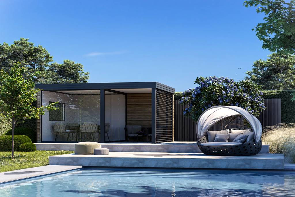 Vous souhaitez créer un studio pour recevoir des amis ou de la famille ? LAYLA permet d’aménager un abri moderne, sobre et habitable en plus d’être pratique grâce à ses dimensions ajustables. Son isolation thermique et phonique de qualité supérieure vous permet d’y loger en toutes saisons. Vous souhaitez créer un véritable bureau de jardin pour organiser votre télétravail de manière totalement indépendante ou créer une salle de sport privée pour la musculation et la remise en forme ? Aucun problème ! LAYLA saura s’adapter à vos besoins. Besoin de stocker du matériel de piscine ou de créer un espace de détente ? LAYLA se transforme en pool house pour un espace à vivre esthétique et fonctionnel à côté de votre piscine. Demandez conseils à votre Partenaire OMBRALU qui saura vous accompagner dans votre projet.