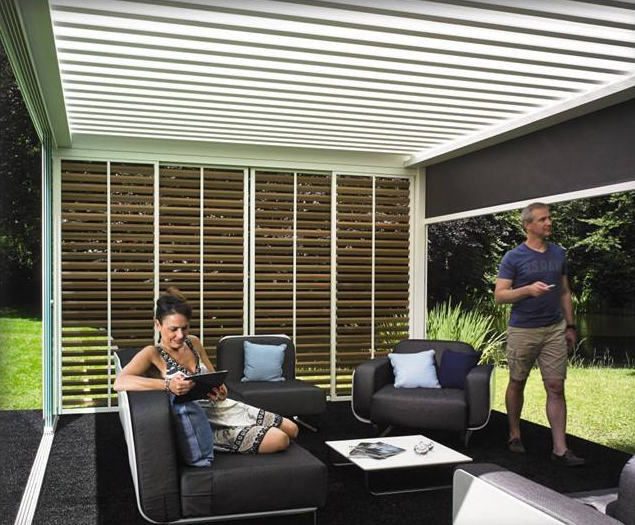 La Télécommande IO permet de piloter tous les équipments de votre terrasse (screens, stores, éclairage ...) Vous pouvez également déléguer la gestion du store aux automatismes vent et soleil. Partez l’esprit tranquille, l’automatisme gère pour vous les protections solaires (stores ou volets): vous trouverez une maison et une terrasse plus fraîches en rentrant.