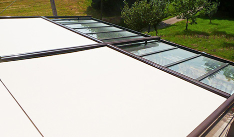 Store Screen de toiture est un système de protection solaire extérieur avec moteur, à guidage latéral spécialement conçu et adapté à la toiture de votre véranda ou de votre pergola OMBRALU, jusqu’à 4,8 m de large et une avancée de 6 m soit une surface totale de 18 m2 d’ombre, vous permettant d’augmenter le confort thermique de votre véranda de façon écologique en évitant la climatisation. Il peut être couplé en largeur jusqu’à 9,6 m pour atteindre 36 m2 de surface. .