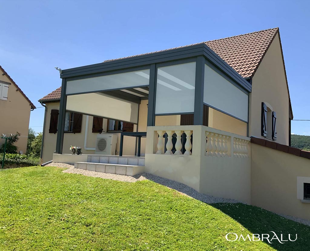 Du type de toiles, entre 150 toiles Screen (sergé 600), Soltis 86 et Soltis 92, 5 toiles occultantes Soltis B92 Black-Out pour vivre discrètement à l’intérieur de votre véranda OMBRALU et en option des fenêtres transparentes en PVC. De la finition laquée des profilés en aluminium et du coffre (5 couleurs de base et en option 200 teintes RAL. De l’installer dans le coffre intégré OMBRALU ou dans son propre coffre spécial placé en applique. En option profil PVC souple afin de prévenir une marque visible sur la toile.