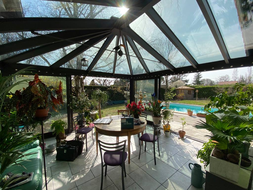 Véranda toiture en verre